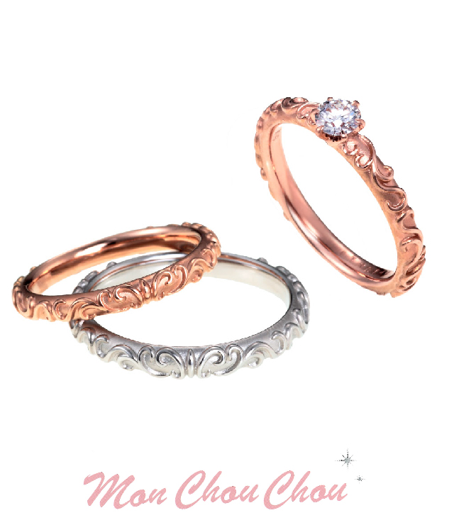 プラチナ×イエローゴールドは王道の組み合わせ。ピンクゴールドを加えると柔らかく優しい印象に仕上がります。